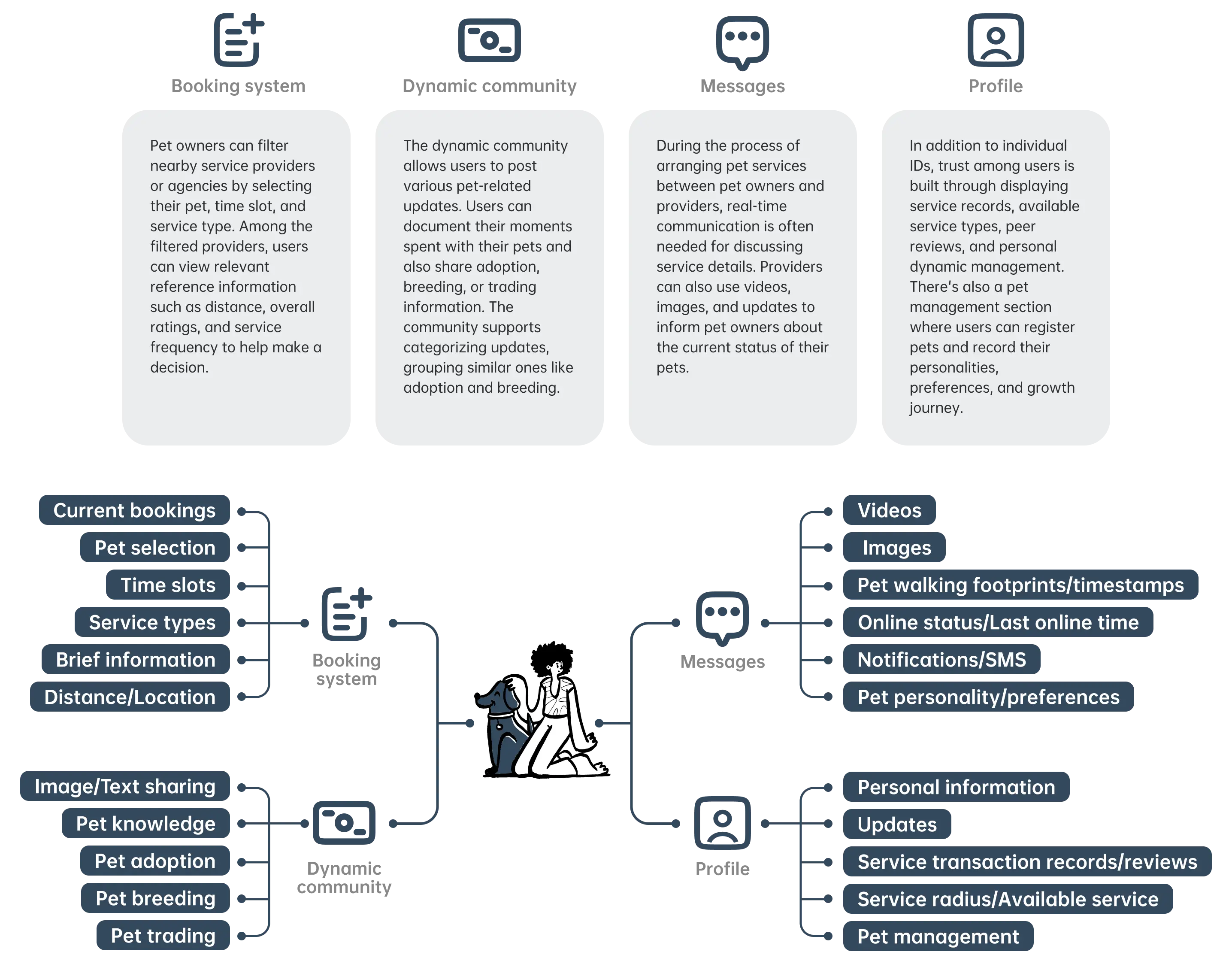 A product designed to help pet owners find pet daycare, adoption, and dog walking services