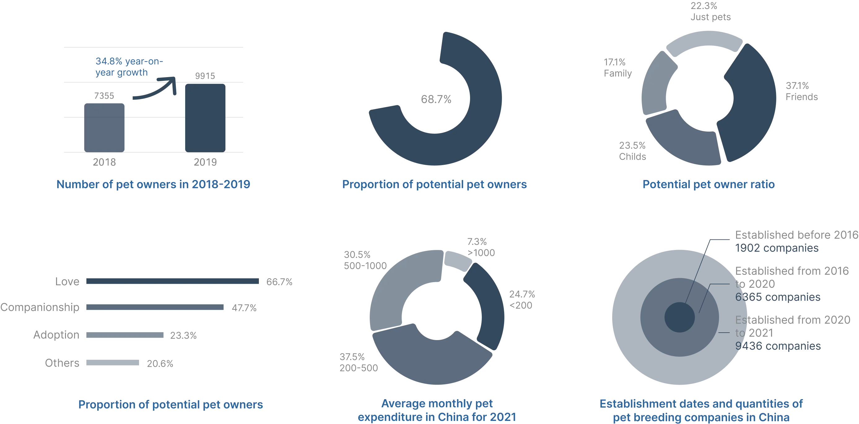 Based on the '2021 China Pet Economy Industry Research Report' by AiMedia Consulting, the count of pet owners and the percentage of prospective pet owners have been progressively climbing on an annual basis. The perspective of pet owners towards their pets predominantly leans towards considering them as friends, family members, or even akin to children. The expenditures made by individuals on their pets are consistently on the rise.